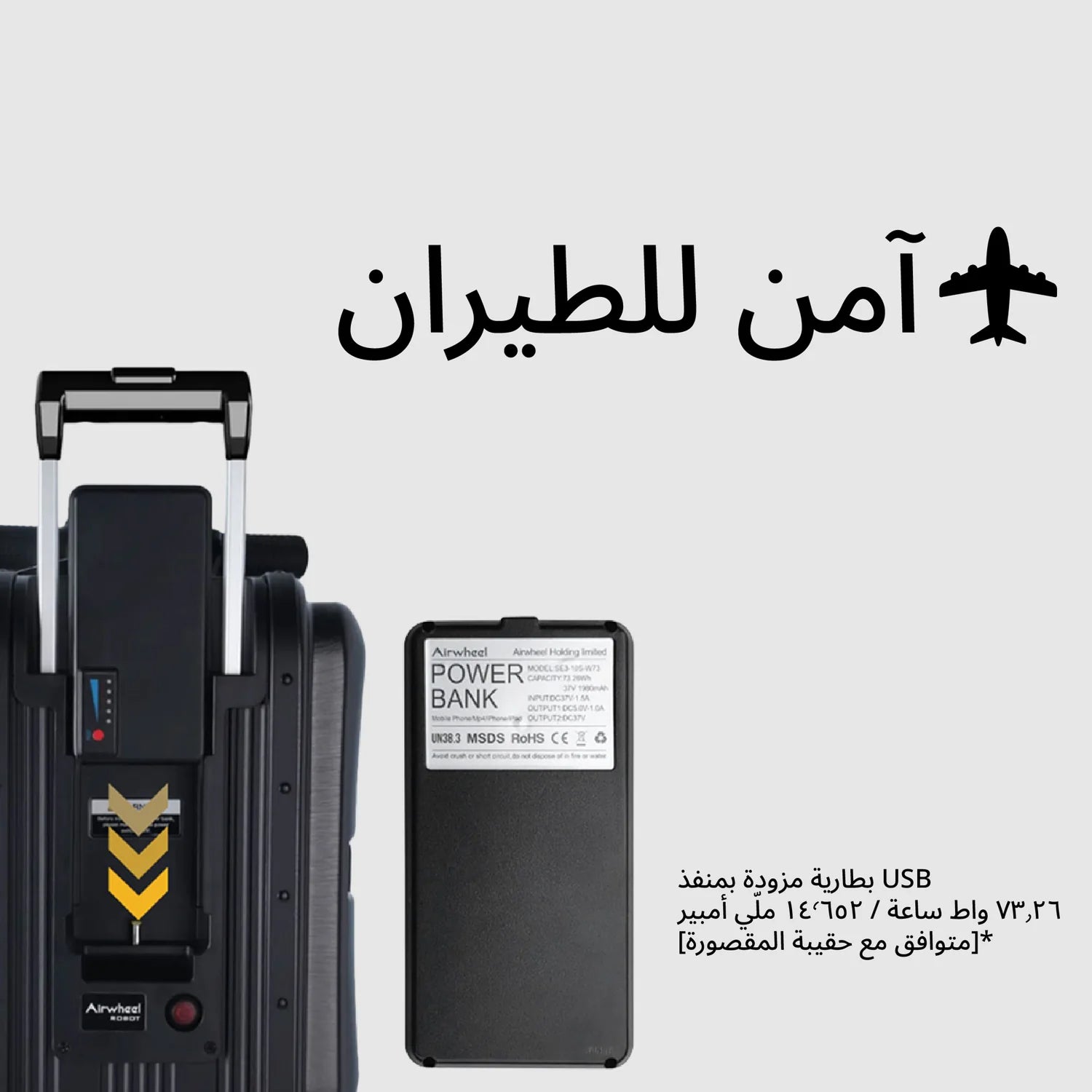 تنبيه: يرجى التحقق من سياسات شركات الطيران قبل السفر باستخدام حقيبة Airwheel الكهربائية، وضمان الالتزام بكافة القوانين واللوائح المعمول بها. لا تتحمل الشركة أي مسؤولية عن أي مشكلات قد تنشأ نتيجة عدم الامتثال.